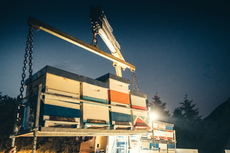 Ma la parte più affascinante è sempre la notte, quando andiamo a caricare le api sul nostro camion e le portiamo a “villeggiare” in paradisi ecologici cosi belli che poi si fa sempre fatica a salutarli. Spostare le api in questi luoghi, non ha solo un aspetto “produttivo”, ma soprattutto “rigenerante” per l’ambiente stesso che sopravvive anche grazie all’azione di impollinazione dell’ape stessa.